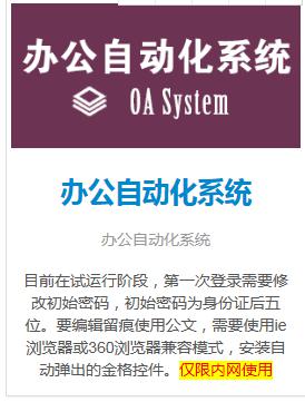 2、点击“办公自动化系统”进入OA界面